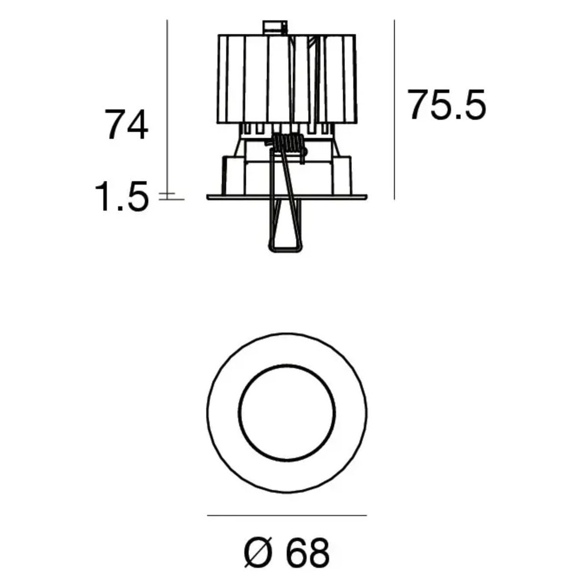 È concepito per l’installazione a incasso interno, con corpo compatto e design moderno nero (RAL 9005 “embossed”) ed è destinato ad ambienti dove serve un’illuminazione concentrata e calda.