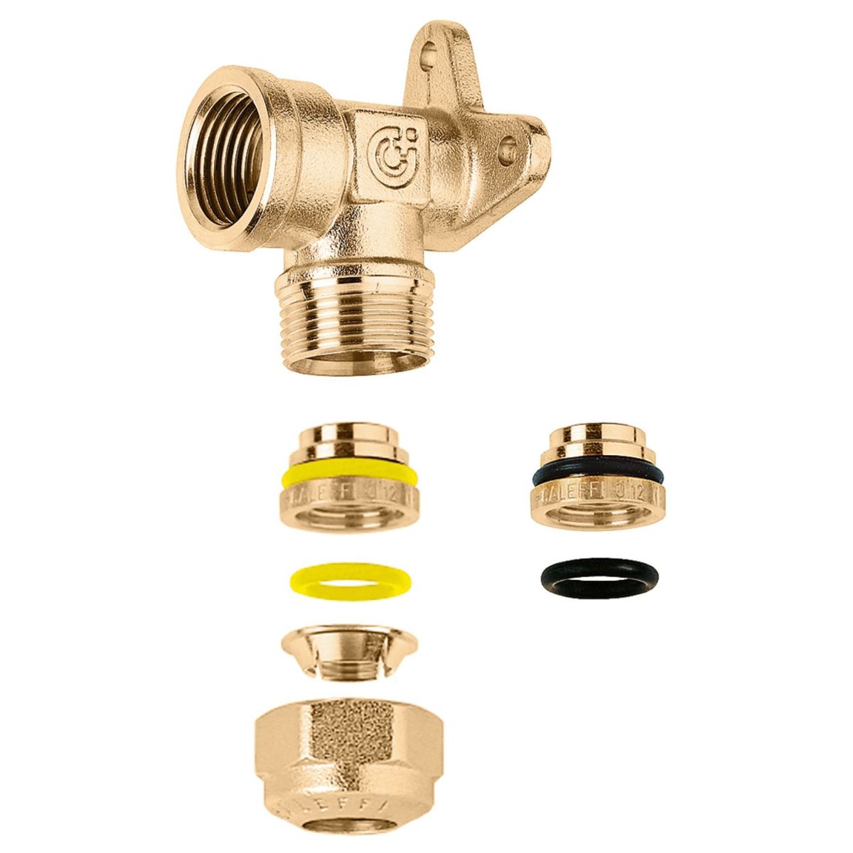 Flange elbow fitting with double O-Ring for annealed copper, raw copper, brass, mild steel and stainless steel pipes.