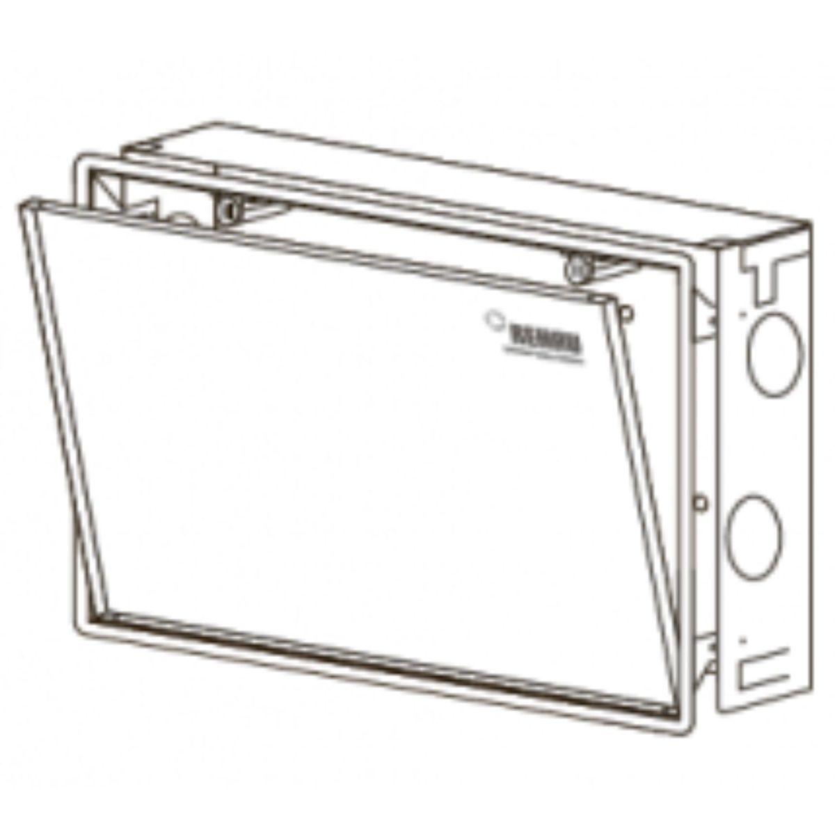 Built-in box for RAUTITAN LX/RX+ 5+5 collector 40x25x8-11 cm with 4 side fixing tabs, an adjustable depth from 80 to 110 mm and the possibility of connecting the main pipes from the side or from the floor.