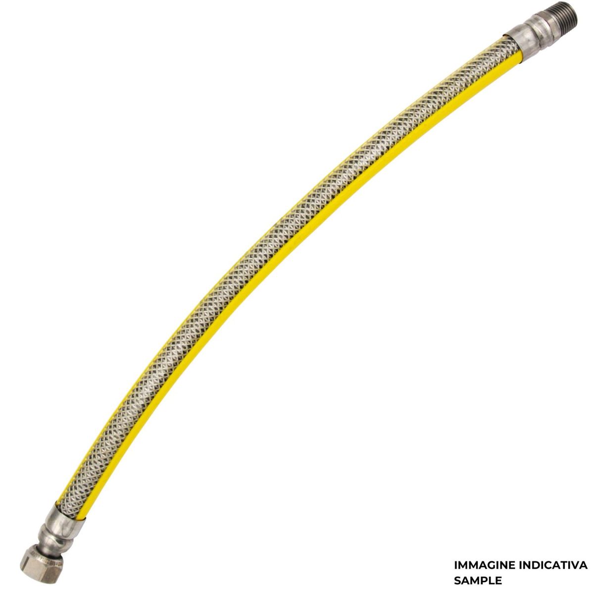 1/2" gas hose made of stainless steel, designed to ensure safe connections for internal applications, such as connecting kitchens.