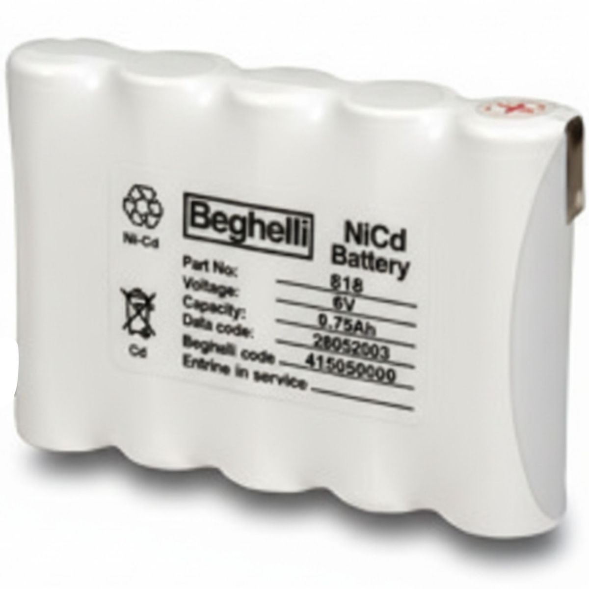 Pack de baterías recargables de Ni-Cd (níquel-cadmio) de 6V y 0,75 Ah de capacidad, formado por celdas en una configuración que proporciona la tensión nominal requerida.