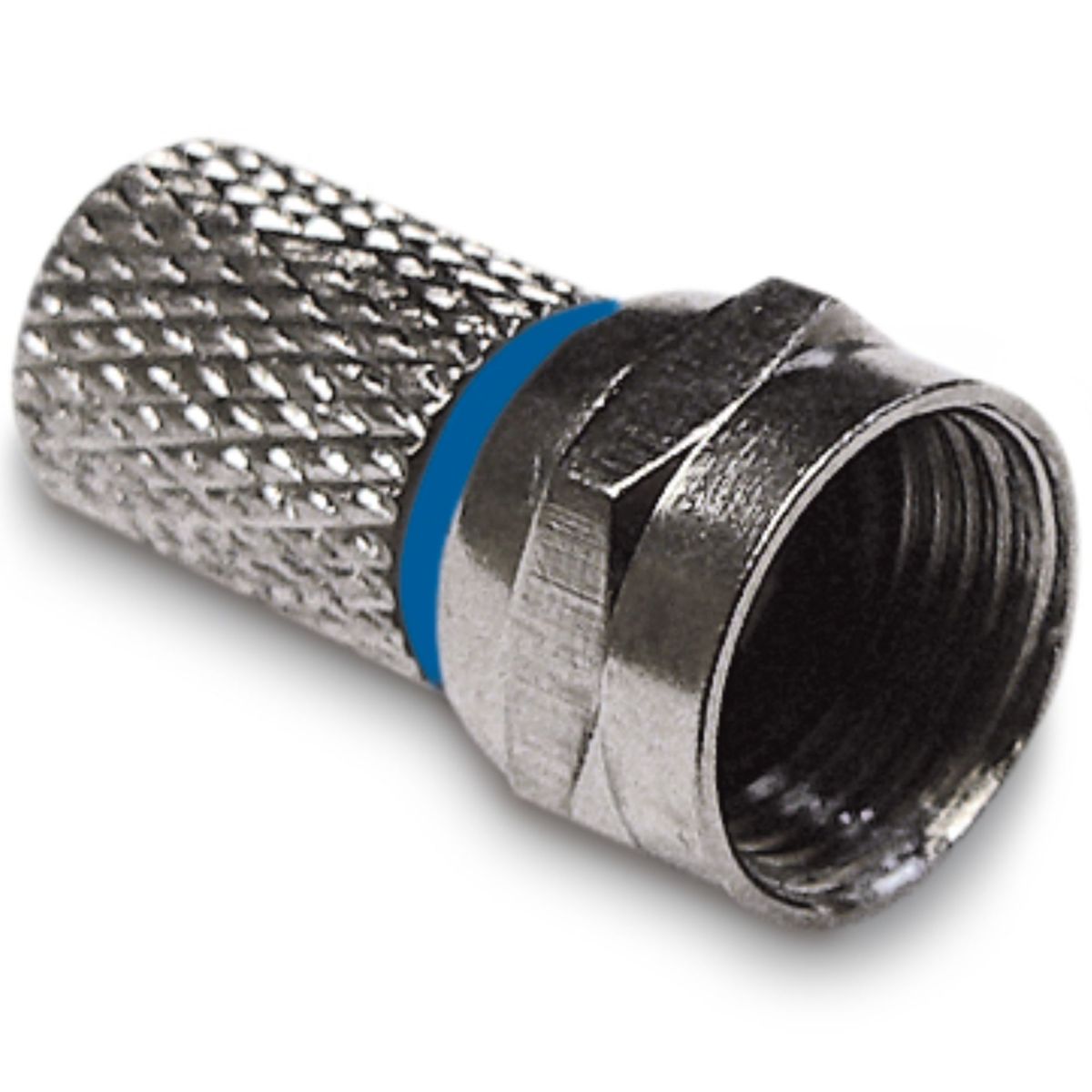 Conector F de compresión diseñado para garantizar conexiones fiables y duraderas en sistemas de televisión y satélite.