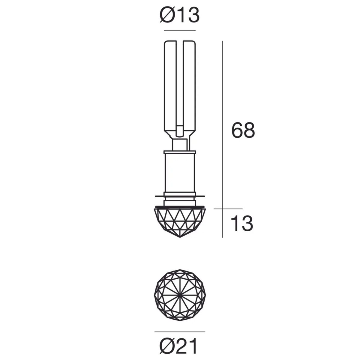 Tiene grado de protección IP52, cuerpo de latón con acabado en cromo galvánico y difusor de cristal, el peso del dispositivo es de 0,045 kg y el kit incluye un cable de alimentación de 0,12 m.