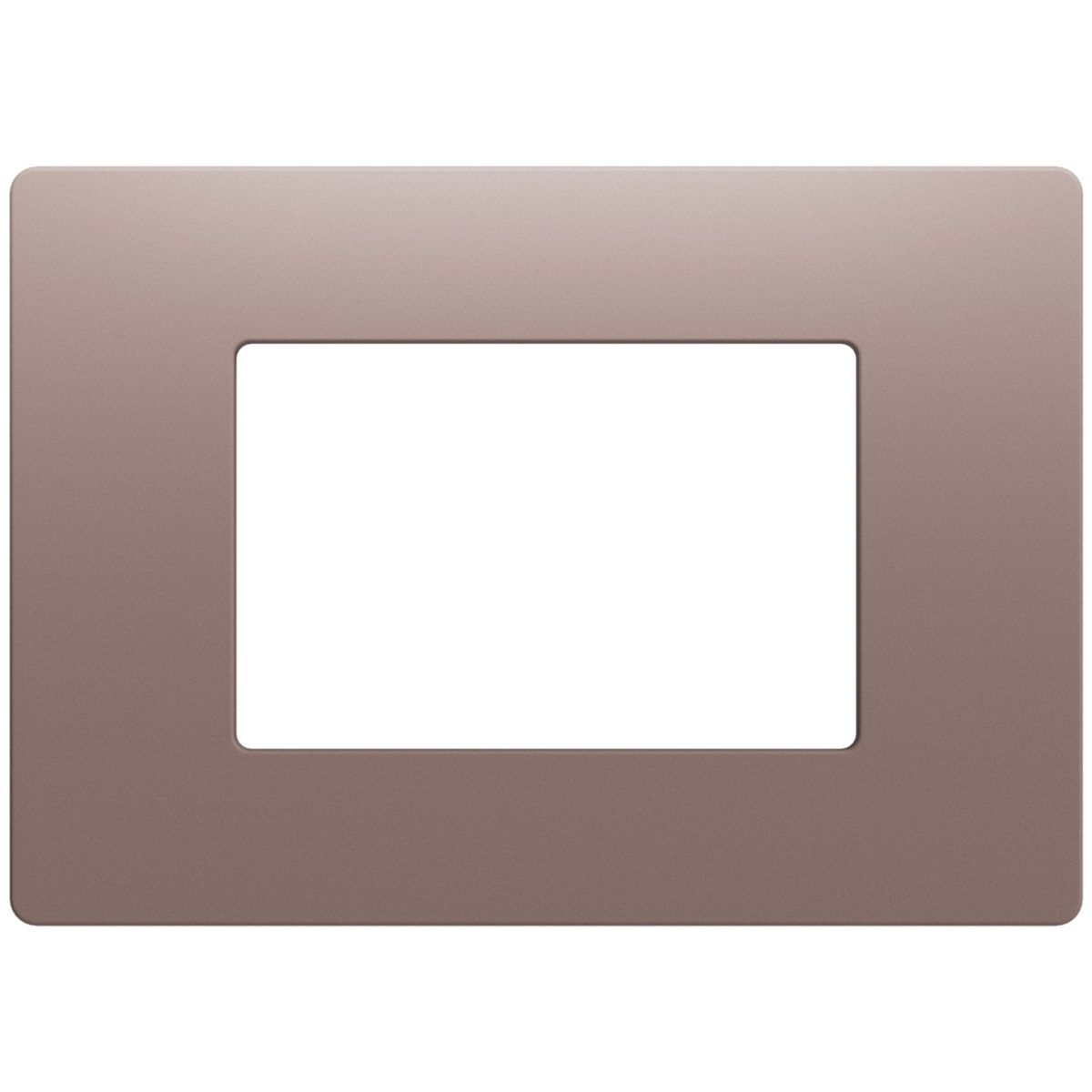 Esta placa de la serie System Pura, diseñada para integrarse con interruptores, enchufes y dispositivos modulares de la gama Gewiss, cuenta con 3 ranuras y puede alojar hasta tres módulos (como interruptores, botones o enchufes) en una configuración ordenada y visualmente uniforme.