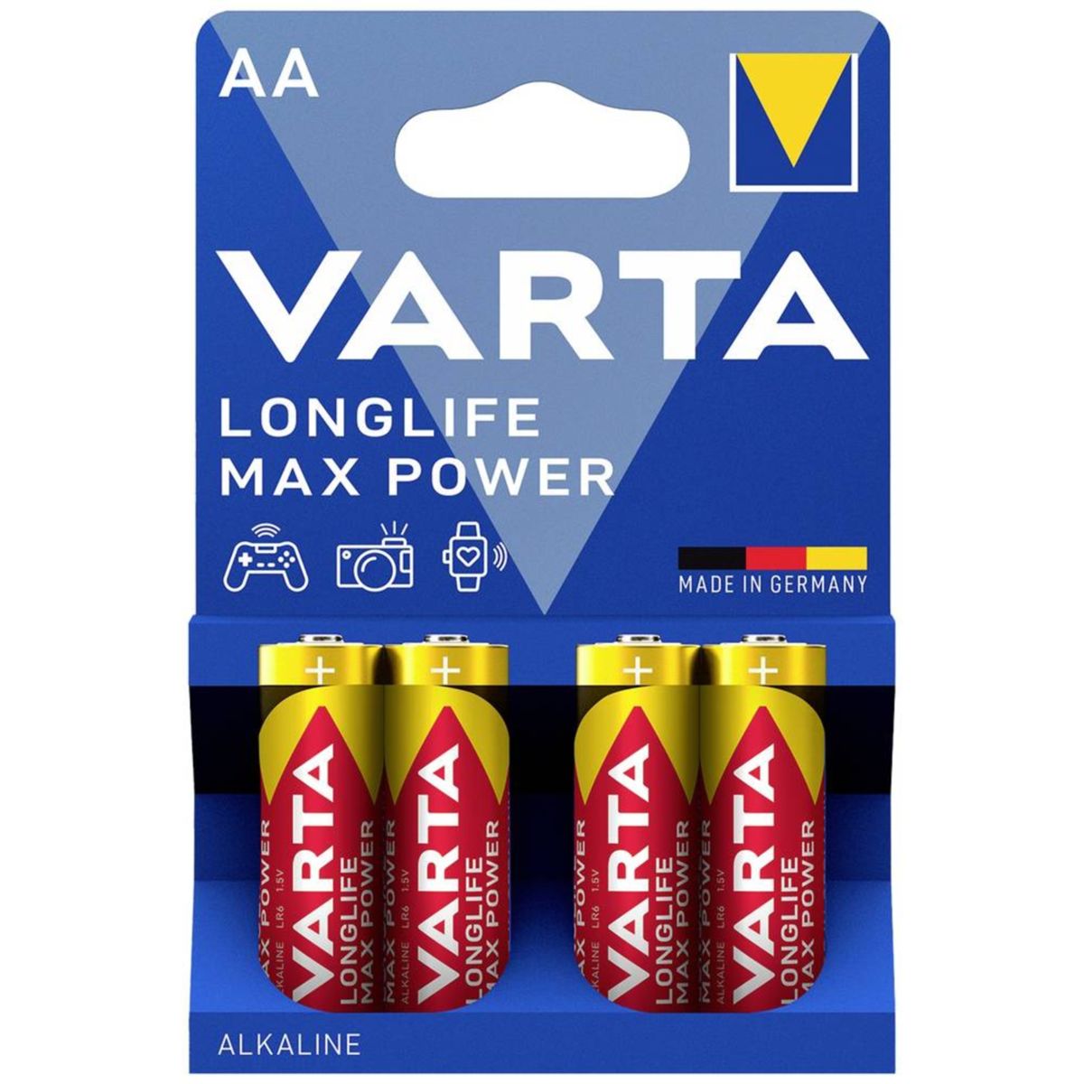 La Varta Longlife Max Power AA, código 04706101404, es una pila alcalina mignon no recargable de tamaño AA, suministrada en blísteres de 4, diseñada para ofrecer un alto rendimiento y la máxima potencia en dispositivos electrónicos que requieren un suministro de energía más intenso.