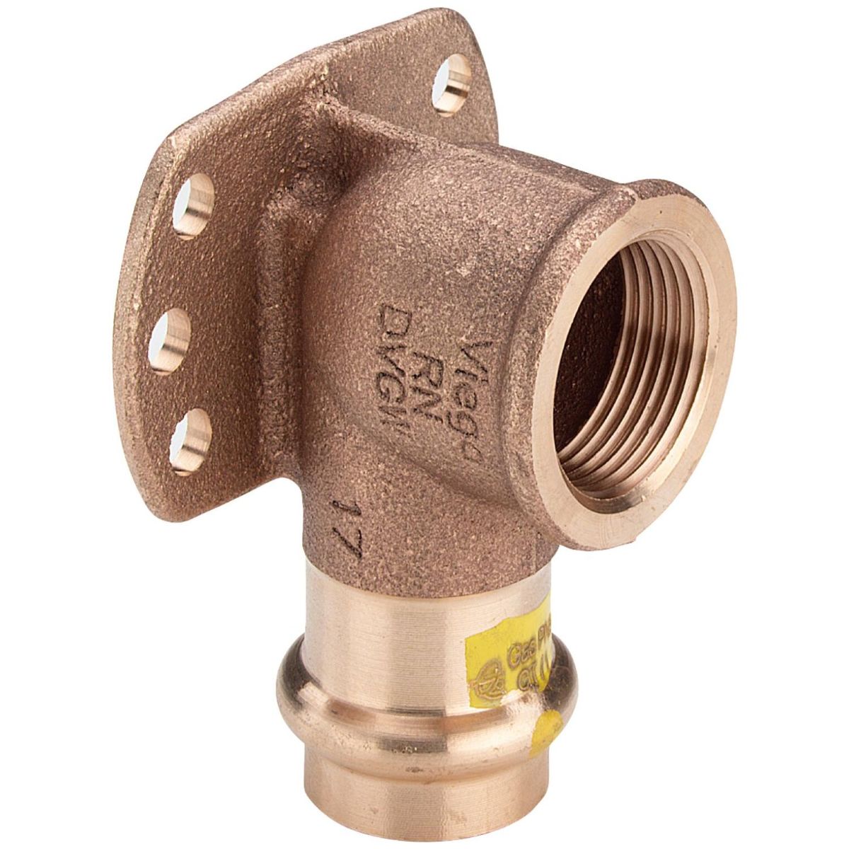 Codo de 90° con brida del sistema Profipress G, desarrollado para garantizar conexiones seguras y confiables en instalaciones de gas natural y GLP, fabricado en bronce de alta calidad, el accesorio cuenta con una conexión press de 18 mm y una rosca interna de 1/2 pulgada (Rp).