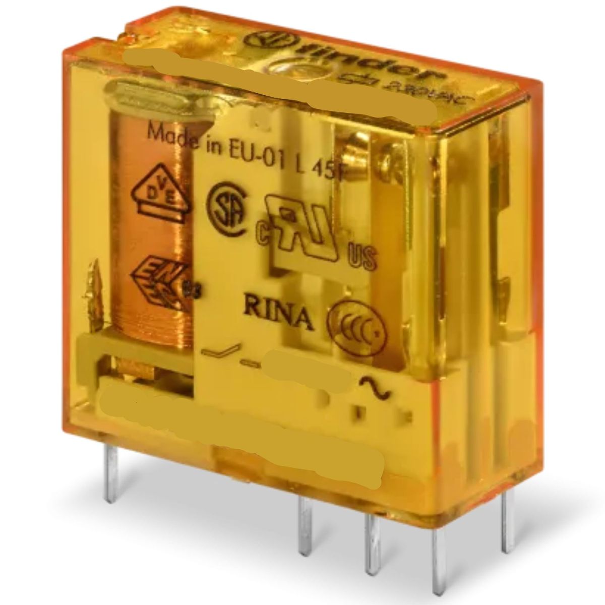 Mini relais série 95 pour circuit imprimé et montage sur embase avec contacts inverseurs 2NO/NC, 110V - 8A - 50/60Hz, bobine AC, pas de 5 mm.